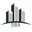 A city street with construction equipment, including a large excavator from CAT parked in the middle of the road. The street is lined with buildings featuring various architectural designs, including a reddish-brown brick building. There are cars parked and in motion, along with pedestrians walking on the sidewalks. Traffic cones and signs are visible, indicating ongoing roadwork.